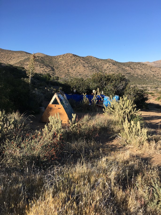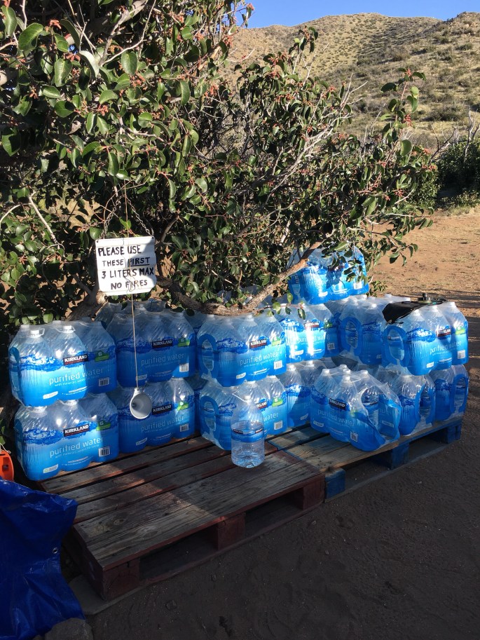 Nach einem kleinen Abstieg fand man einen großen Watercache vor. Das sind Stellen, an denen Trailangel teils große Mengen Wasserkanister deponieren. Vor allem in der trockenen Wüste Gold wert!