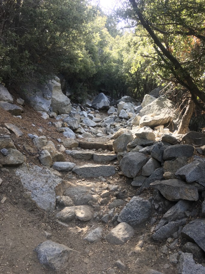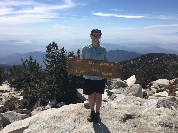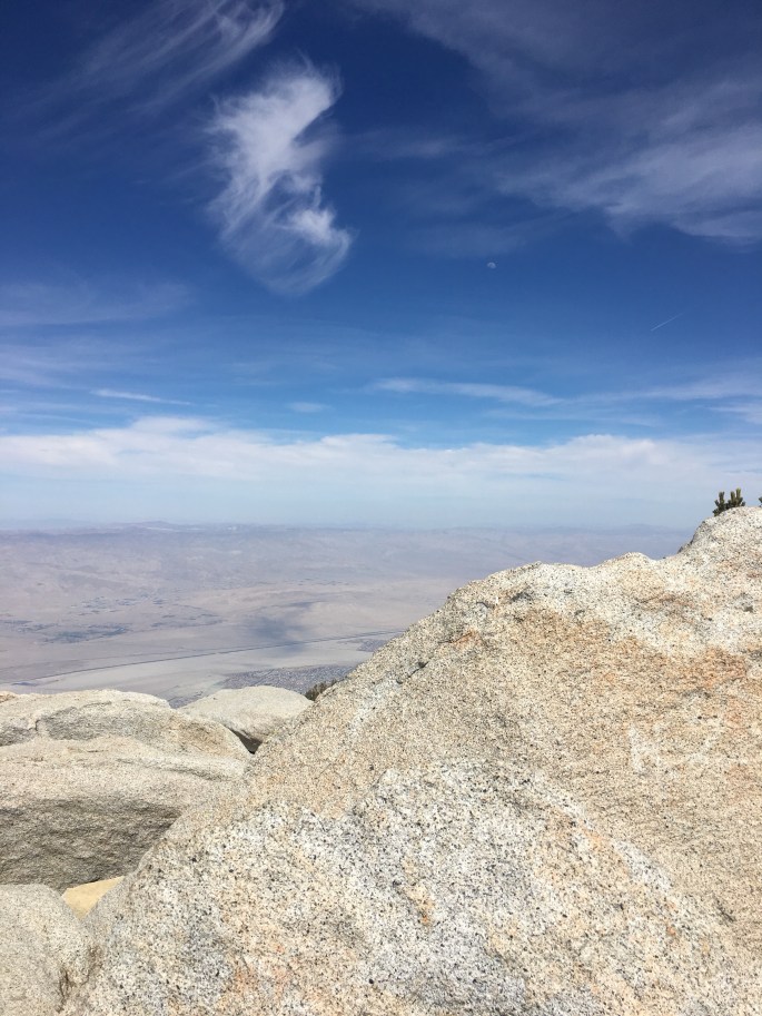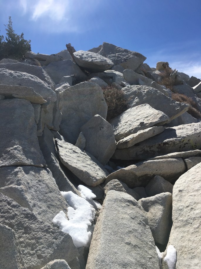 Es sah aus, als habe jemand einen großen Sack voller Felsen einfach ausgekippt, darauf das Schild „Mt. San Jacinto Peak“ gestellt und gesagt „viel Spaß beim hochklettern. Denn einen richtigen Weg nach oben gab es nicht. Also wurde der Rucksack in die Ecke gelegt und los ging die Kletterpartie. Einfach den Stimmen folgen hieß es.