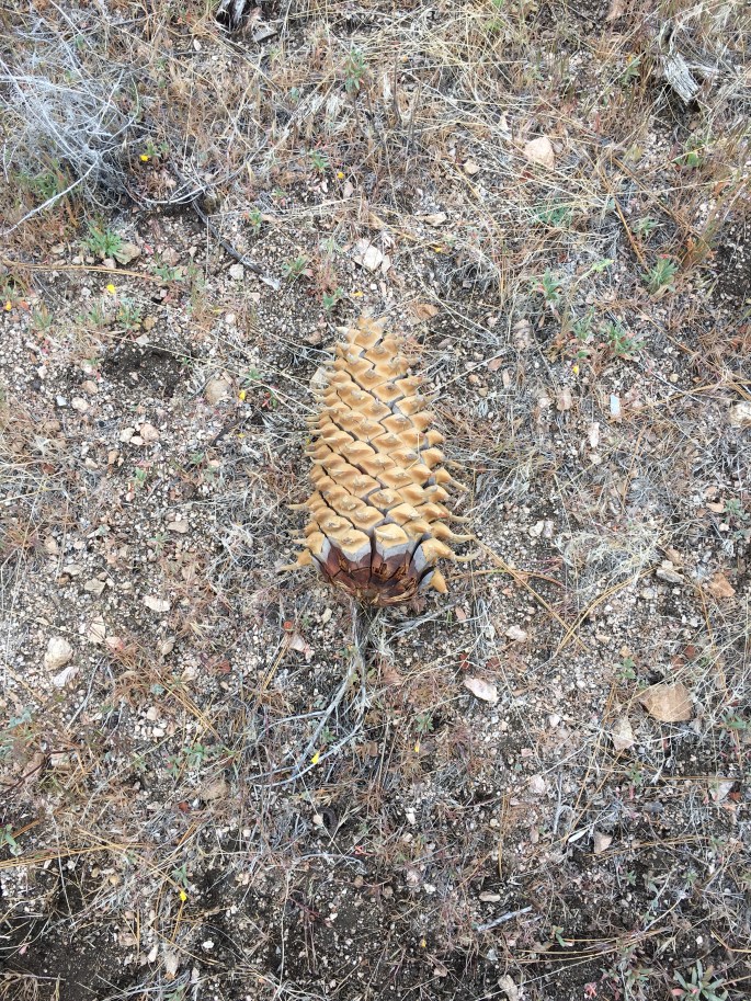 Dafür sahen wir riesige Tannenzapfen! Rita erzählte mir viel über die verschiedenen Bäume und war ganz begeistert von der Natur um uns herum.