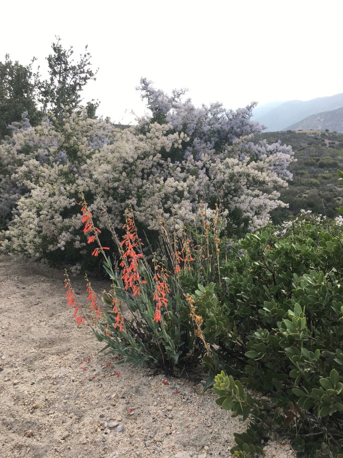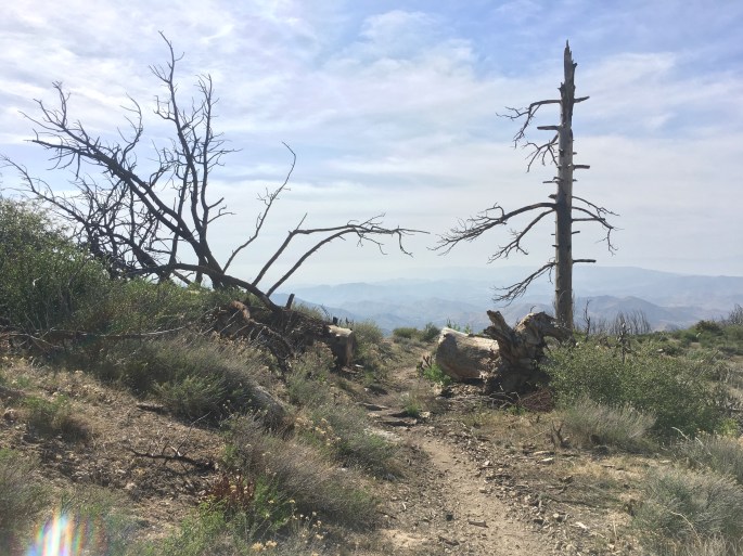 Die letzten Meilen ging es dann Berg ab. Vorbei an abgebrannten Bäumen. Trotzdem regeneriert sich die Natur wieder und es wuchsen wieder die ersten Blumen und Sträucher.