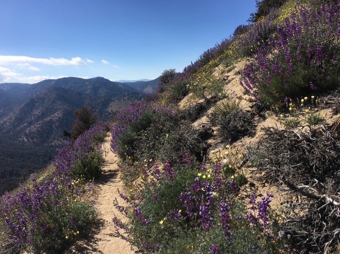 Daher verkürzen wir die Mittagspause und nahmen die letzten sieben Meilen in Angriff. Es ging nurnoch kurz etwas Berg auf und die letzten Meilen ausschließlich Berg ab.