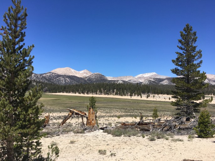 Danach ging es nur noch ein kurzes Stück Berg auf, bis wir an eine Gabelung kamen, an der man entweder dem PCT folgen oder zum Horseshoe Meadows herabsteigen kann. Wir hatten den Abstieg geplant, denn an dem dortigen Campingplatz wurden wir abgeholt und nach Lone Pine gefahren.