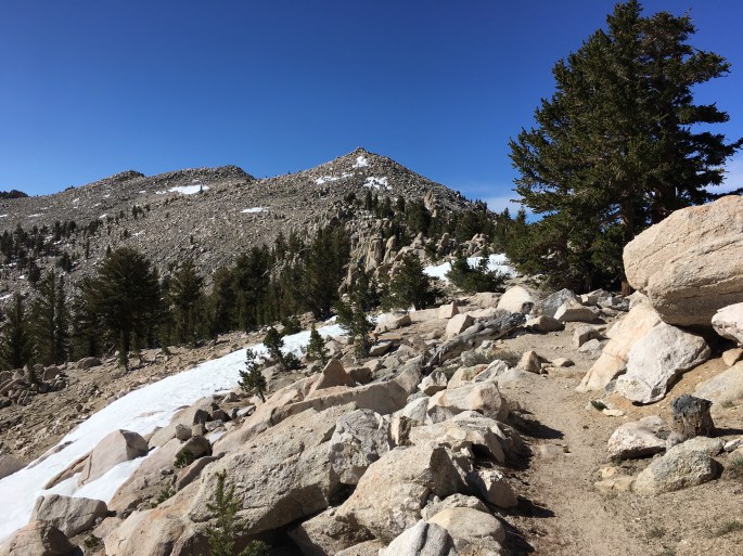 Heute früh war es kalt! Nachts hat es leicht gefroren doch am Morgen waren weder Zelt noch Schlafsack klamm. Mit langer Leggings und Windjacke ging es dann los. Vom Zeltplatz liefen wir zum Cottonwood Pass um dort wieder auf den PCT zu treffen.