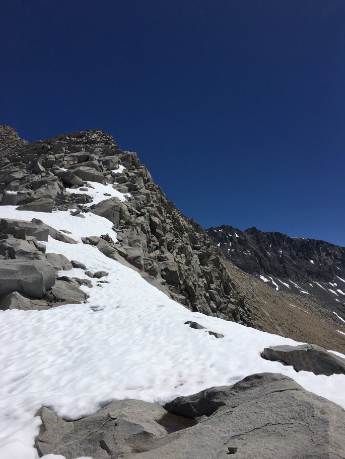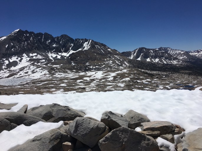 Oben angekommen trafen wir dann wieder auf Schnee. Der Mather Pass ist bisher der erste Pass, auf dem Schnee liegt. Die anderen Pässe waren bisher an der „Spitze“ schneefrei.