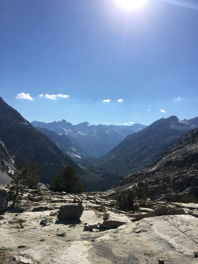 Wir liefen schließlich immer weiter Richtung „Tal“ und trafen schließlich auf einen wunderschönen, funkelnden See in Mitten des Kings Canyon. Zudem strömten um uns herum zig Wasserfälle aus den Bergen heraus und ich verstehe wieso die Sierra als Kronjuwel des PCT gilt. Die Pässe zu besteigen ist harte Arbeit, aber die Aussichten und die Natur sind atemberaubend! Ich habe selten so idyllische Plätze gesehen und war selten so ergriffen von der wilden Natur.