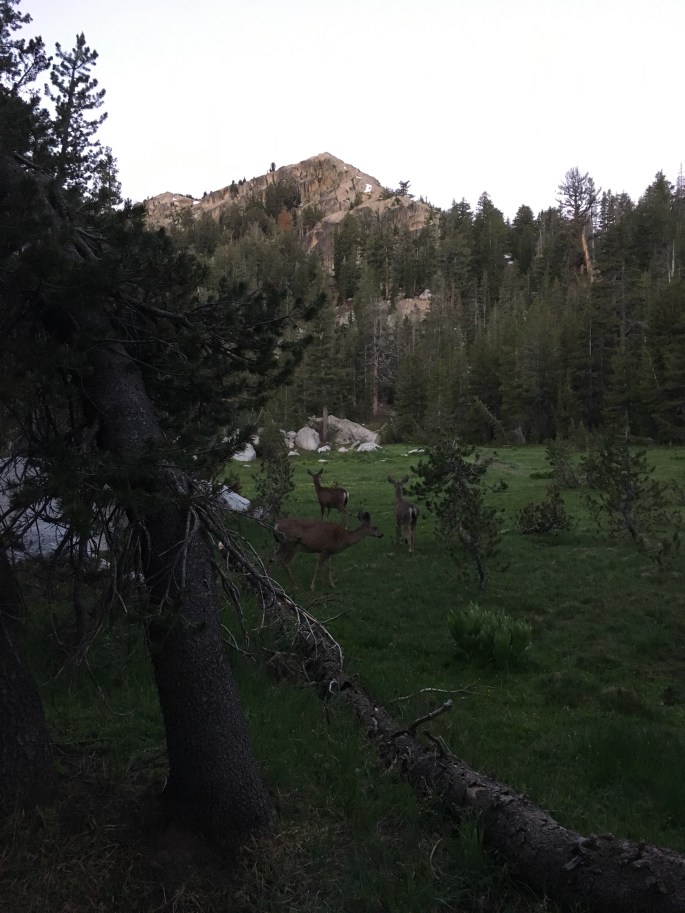 Am Nachmittag wurden wir dann von einer Rangerin kontrolliert. Wir mussten unser Permit und den Bärenkanister zeigen. Die Rangerin war sehr nett und hat sich noch etwas mit uns unterhalten. Sie war zusammen mit zwei anderen Rangern für sechs Tage im Yosemite Nationalpark unterwegs um sich die Meadows anzusehen. Diese waren bisher noch nicht für Wanderer mit Pferden freigegeben, da die Meadows noch zu nass waren und die Pferde zu viel zerstören würden.