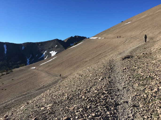Wir sind wieder um halb sechs losgelaufen. Bis zum Sonora Pass liegt ein Anstieg vor uns und uns sollen einige Schneefelder erwarten.