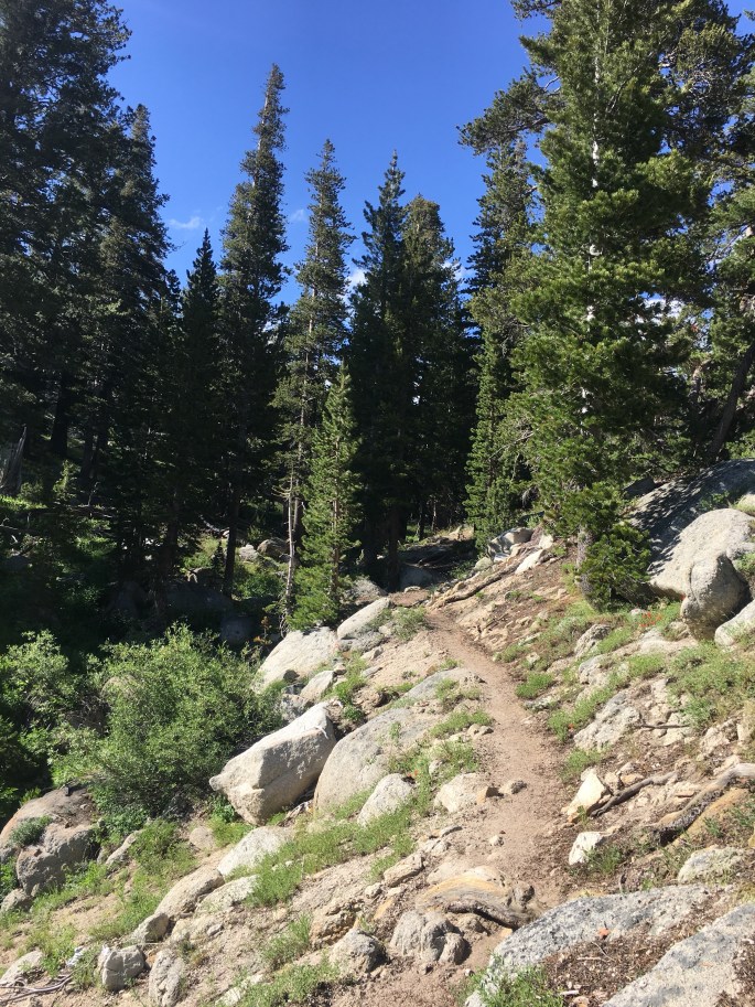 Vorher liefen wir jedoch noch ein paar Meilen Berg ab und kreuzten dabei kleine Schneefelder.
