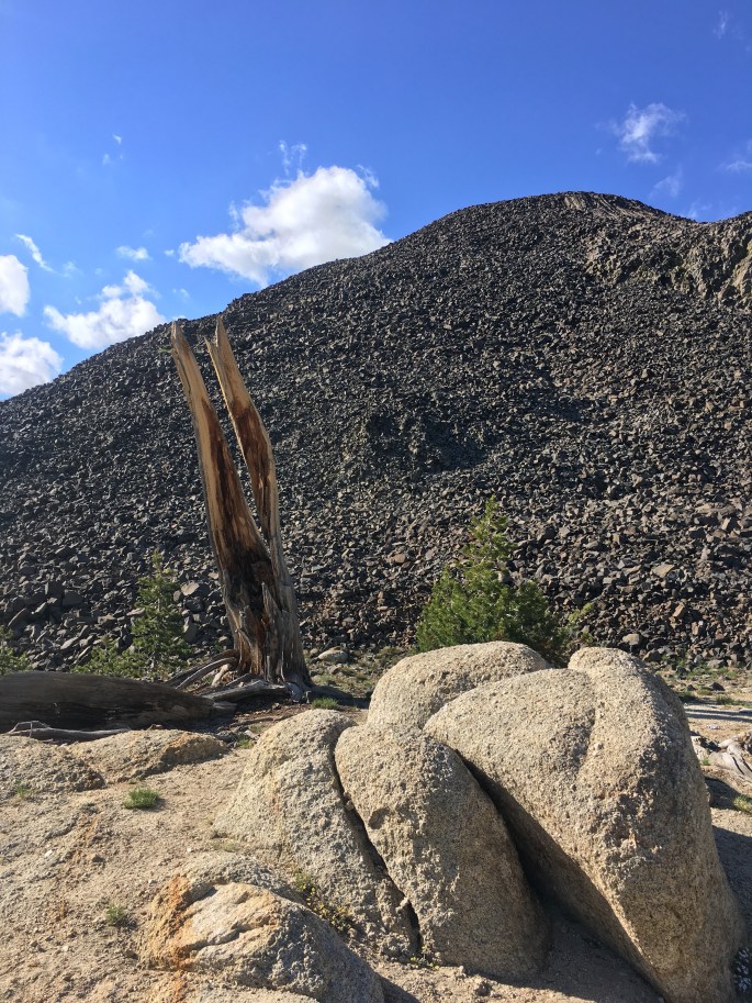 Am Abend standen wir dann plötzlich vor einem riesigen Berg bestehend aus schwarzem Gestein. Es sah aus als hätte jemand einfach schwarze Steine angehäuft und es passte so gar nicht in den Rest der Landschaft. Nirgends sonst wären Ansammlungen dieses Gesteins zu sehen und wir rätselten lange was es war. Also falls sich hier ein Geologe o.ä. berufen fühlt mich aufzuklären, gerne her mit den Erklärungen.