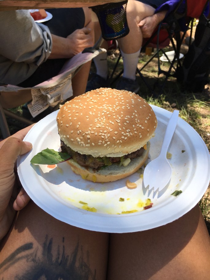 Gegen 13:30h kamen wir dann am Ebbetts Pass an. Dort trafen wir auf die Trailmagic und ich konnte kaum fassen was ich sah! Tische voller Essen und die Frage ob man Pizza oder Burger möchte! Ein kleiner Pizzaofen stand bereit und auf dem Grill brutzelten die Burgerpattys. Zudem gab es Obst, kalte Getränke, Muffins und Kuchen.