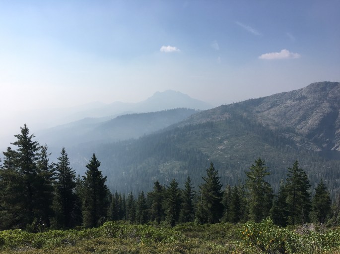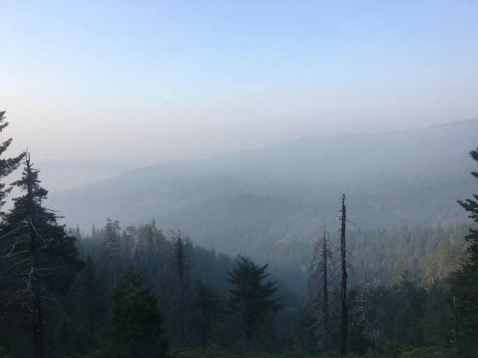 Am Morgen kroch noch viel Rauch zwischen den Bergen entlang und man konnte die Berge in der Ferne nur als leichte Schatten wahrnehmen. Durch die Sonne und den Rauch färbte sich der Himmel am Morgen in leichtes Rosa.