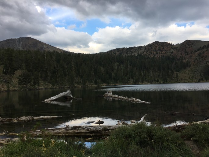Der Donner wurde immer kräftiger und die Wolken zogen sich mehr und mehr zusammen. Als wir an einem See, unserem heutigen Nachtlager, ankamen, sah das Wasser tiefschwarz aus und das Donnern nahm weiter zu.