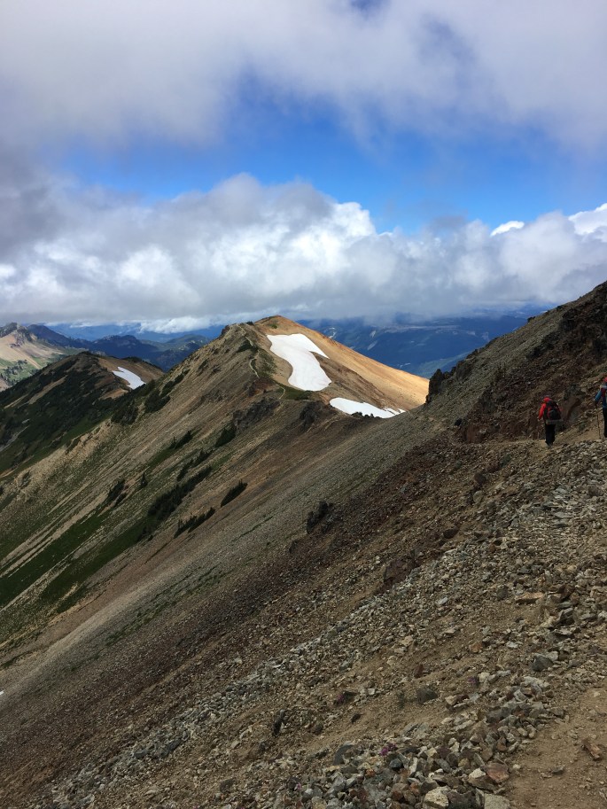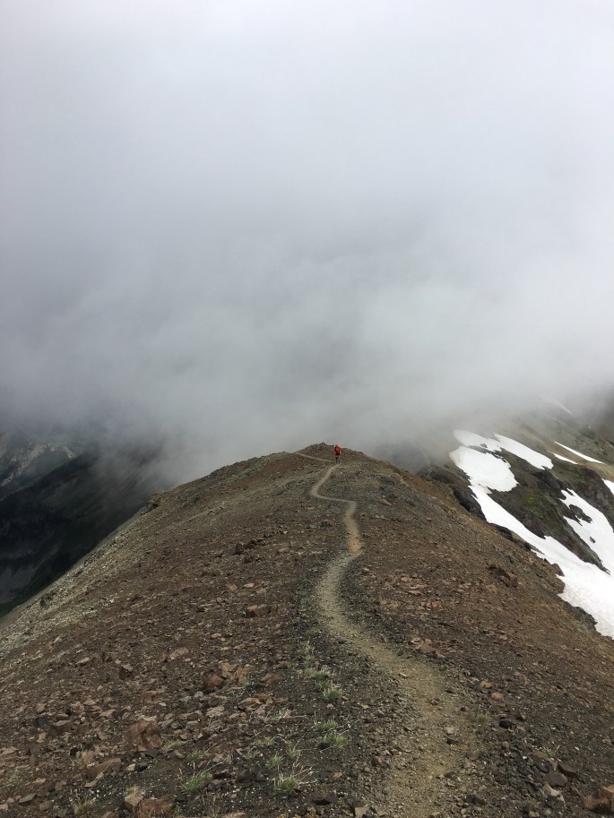 Langsam, denn es ging teilweise sehr steil Berg auf und ab, liefen wir Meile für Meile direkt über die Bergkämme. Wir mussten Schneefelder überqueren und es war ein wenig wie in der High Sierra. Wunderschön, aber man kommt nur extrem langsam voran.